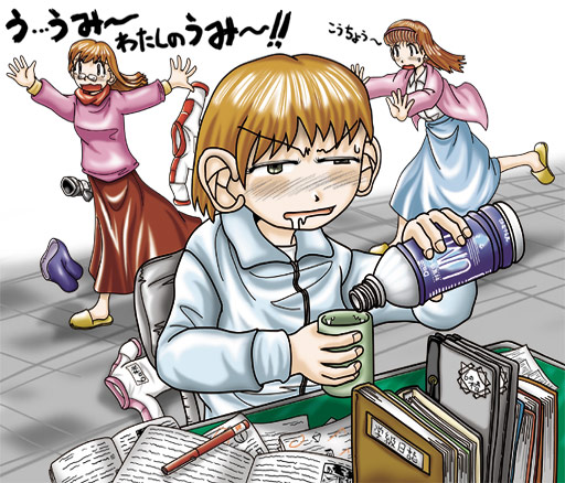 | うみの○○○ | あいかわらじゅ、テンション高いですなぁ! この〇〇を翻訳するとトンでもないものを塩ちゃんは飲んでる事になりますのう(汗) 校長センセのまわりに散乱している物がヒントでピントっすか…さぶ… …このイラストってここで公開しちゃっていいんですよね?だんな! |