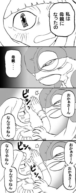 冬月先生にならい描いてみました。 今までで一番制作時間の短いマンガです。約2時間… 仕事中に考えて、笑いながらペン入れ、写植、スキャン、でUP。 2作品の融合物ってなかなか思いつかない〜。