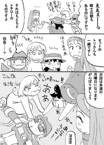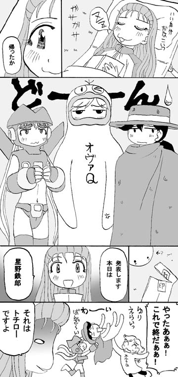 ひっひどい終り方ですね(汗) う〜ん、正直言ってこれ面白いかなあ、なんか不安。 最初のコマはお遊びです。たぶんマンガにはなりませんです。 エイリアンは創作マンガ用なので出るかも。
